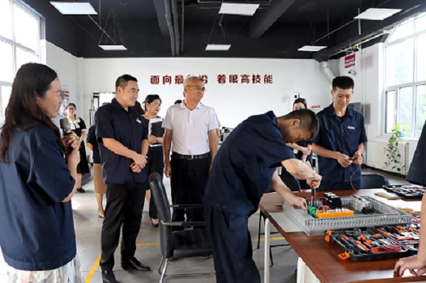 在企業(yè)培訓中心,侯云昌董事長為賈堤一行介紹了培訓基地的建立背景,是集團創(chuàng)始人侯立尊老先生為實現(xiàn)焊材強國夢親自執(zhí)筆起草的人才培育綱領(lǐng)性文件《我的企業(yè)傳承夢》的重要落地舉措,并表明培訓工作是人力資本培育工程的關(guān)鍵環(huán)節(jié)、重要環(huán)節(jié)。賈堤一行聽取了集團生產(chǎn)經(jīng)營和就業(yè)用工情況介紹,詳細了解了集團智能制造、科技創(chuàng)新、人才招引、科技人才隊伍建設(shè)等方面的情況。