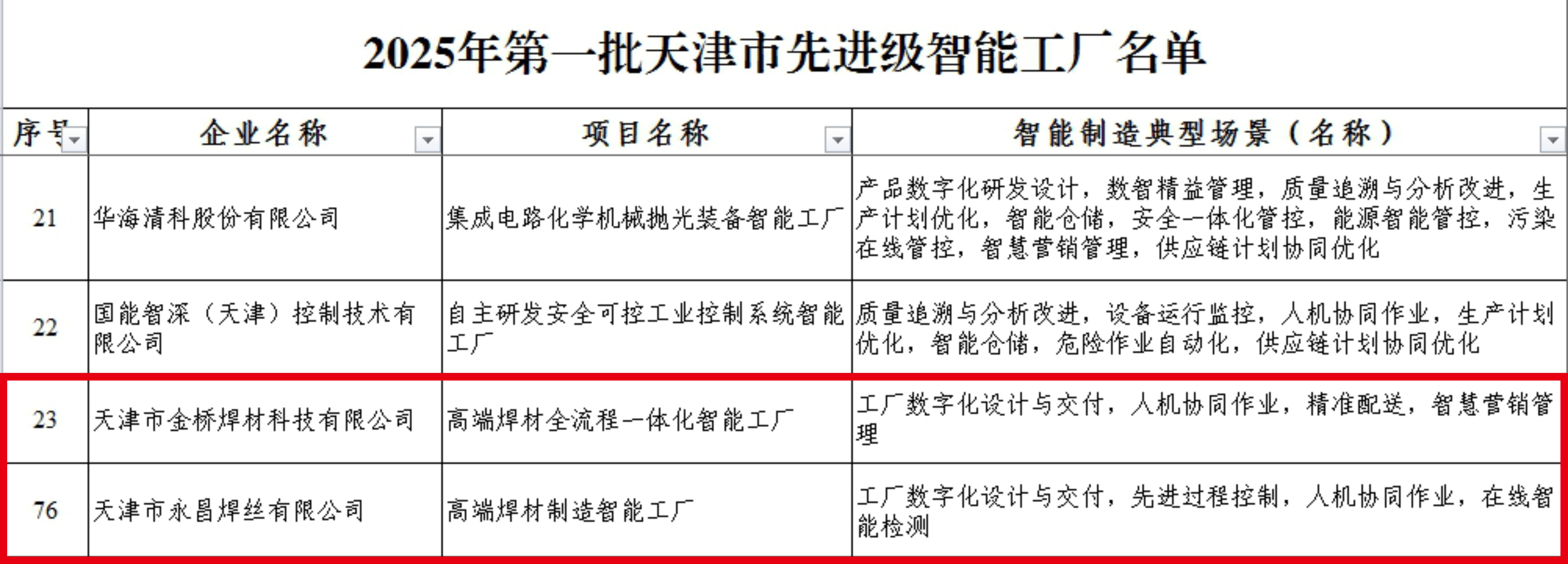 金橋科技公司、永昌焊絲雙雙斬獲天津市首批“先進(jìn)級智能工廠”認(rèn)證