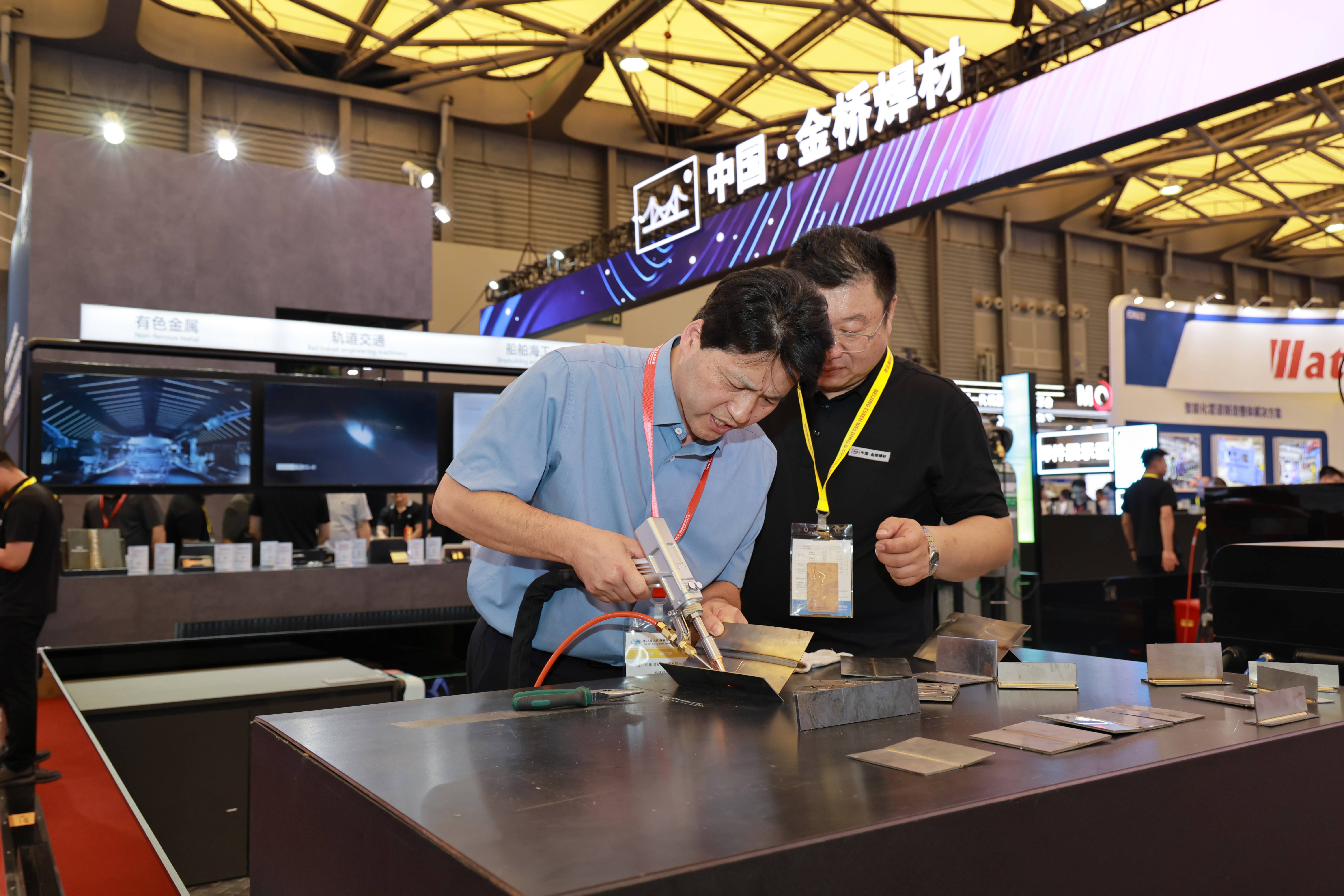 本次展會的聚光燈,無疑聚焦在金橋手持式激光焊機(jī)的首次公開亮相上。它與可編程弧焊電源MOKYLIN(墨麒麟)系列焊機(jī)共同展示于靜態(tài)設(shè)備展示區(qū),吸引了來自各地的新老客戶駐足,近距離體驗(yàn)金橋“焊材+焊接工藝+焊接電源”三位一體的“焊接一體化”理念。此次展出的手持式激光焊機(jī),提供風(fēng)冷、水冷兩種機(jī)型,集成焊接、焊縫清洗、切割、除銹四大功能,經(jīng)專業(yè)測試和多工況焊接試用,為客戶提供高效、節(jié)能、安全的焊接體驗(yàn),進(jìn)一步展現(xiàn)了金橋焊材為用戶提供的精準(zhǔn)數(shù)字化工藝與“量身定制”的焊接一體化技術(shù)與裝備。同時,聚焦高效化、高韌性、特種化焊接前沿,展出了包含能源電力、船舶海工、軌道交通與有色金屬四大領(lǐng)域的多品種焊材產(chǎn)品,為管道工程、船舶制造、海洋平臺、耐候橋梁、鋼結(jié)構(gòu)等領(lǐng)域提供了多樣化的產(chǎn)品選擇。許多客戶聚集于此,認(rèn)真觀看“焊接一體化”設(shè)備。中石化油建單位了解了金橋手持激光焊機(jī)產(chǎn)品情況,對金橋焊機(jī)的實(shí)力表示認(rèn)可。來自韓國的國際客戶表達(dá)了對金橋手持激光焊機(jī)產(chǎn)品的興趣,并稱贊其未來具有廣闊的市場潛力。