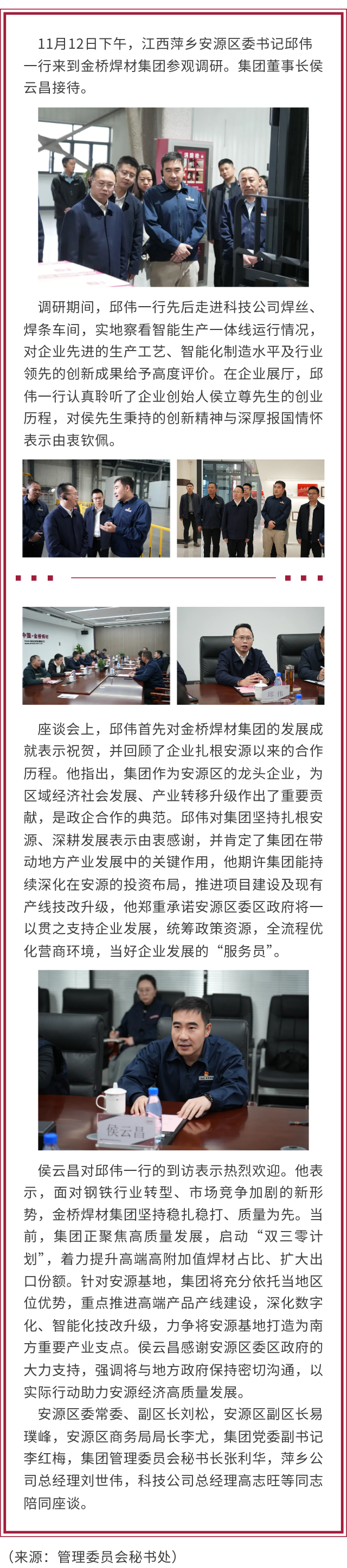 江西萍鄉(xiāng)安源區(qū)委書記邱偉 赴金橋焊材集團(tuán)參觀調(diào)研并深化項(xiàng)目合作